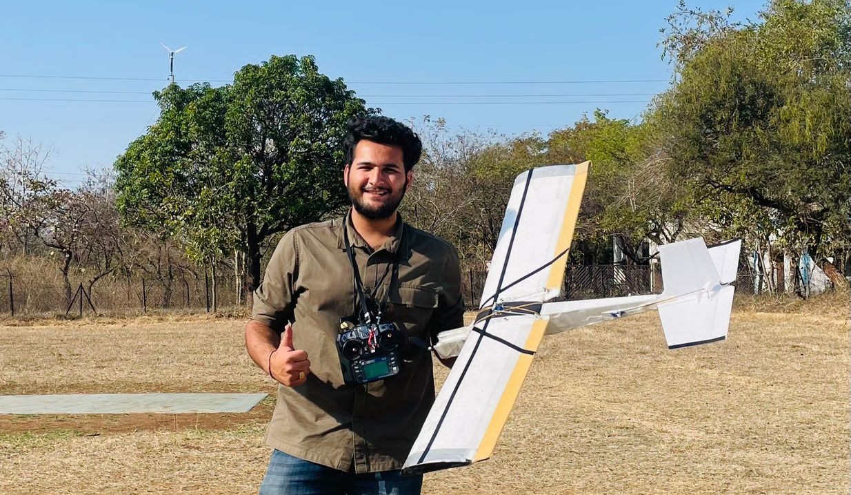 A custom foam board glider with high-aspect-ratio wings and a radio receiver. It features a servo-controlled elevator and rudder, and is optimized for stable soaring and responsive flight.